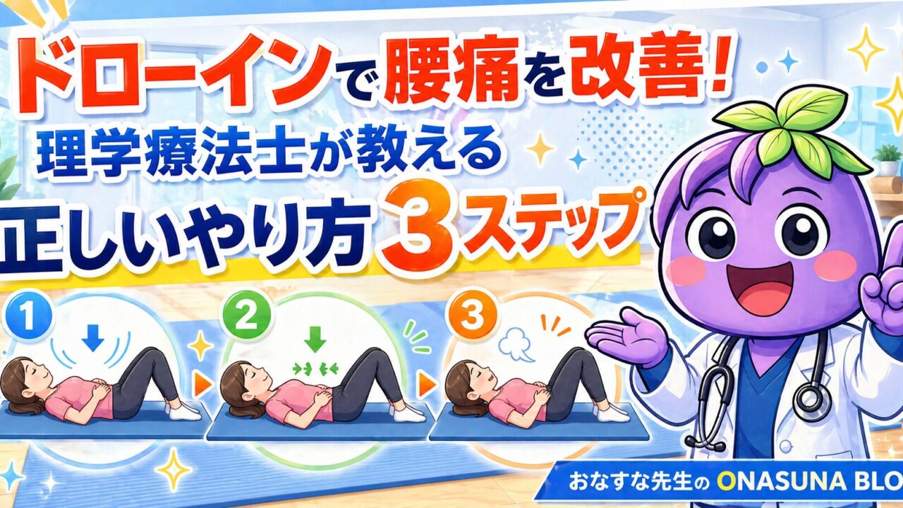 ドローインは腰を「天然のコルセット」として支えるインナーマッスル(腹横筋・多裂筋)を鍛えるトレーニングです。腰痛がない人は腰痛持ちの人と比べて腹横筋が厚いという研究結果があります(Hides et al., 1994)。この記事では、認定理学療法士として3.5万人以上の治療実績を持つおなすな先生が、ドローインの正しいやり方・NG動作・段階別ステップをわかりやすく解説します。