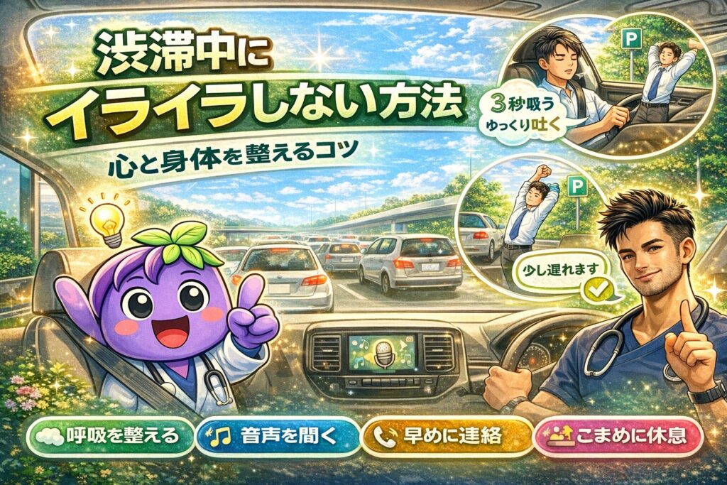 渋滞中のイライラは“性格の問題”だけではなく、身体の緊張・思考のクセ・環境ストレスが重なって起こりやすいです。