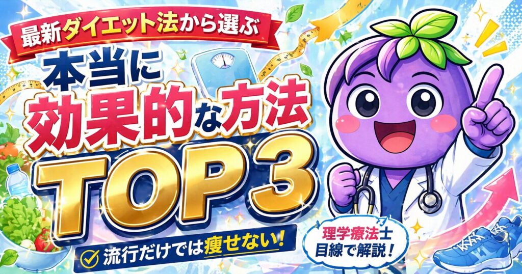 この記事では、数ある最新ダイエット法のなかから科学的根拠のある研究データと継続しやすさの両面で厳選した「本当に効果的なTOP3」を、おなす君が一緒にわかりやすく解説します。