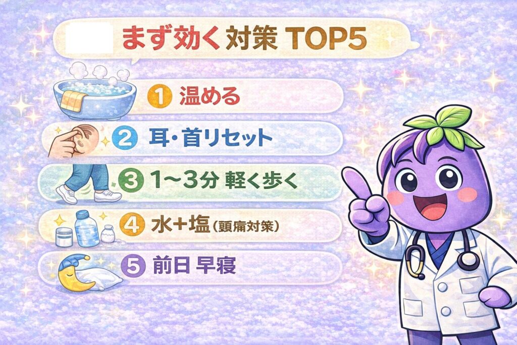 まず効く対策TOP5(科学的に“理にかなう順”)